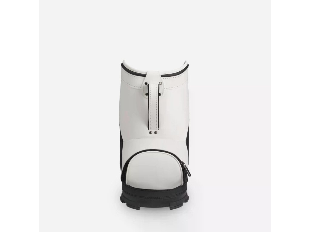 Velký horní otvor usnadňuje plnění golfovými míčky a tři kapsy na zip nabízejí další úložný prostor. golfový cartbag Den Caddy je vyrobena ze stejné vysoce kvalitní syntetické kůže turistické třídy jako naše tašky Staff Bags a má také tři oblasti pro personalizaci.