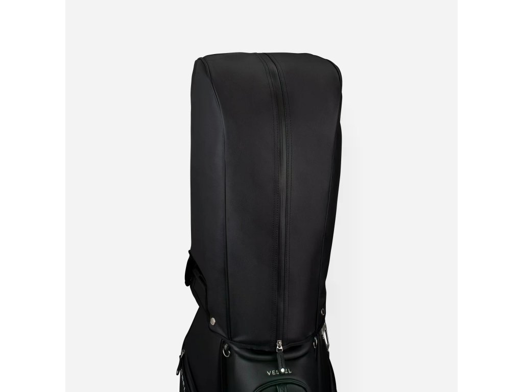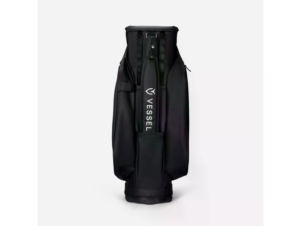 golfový cartbag Lux Cart s detaily z pravé kůže , chromovými akcenty a robustním tělem z turistických materiálů se vyznačuje typickým vysoce kvalitním zpracováním VESSEL.